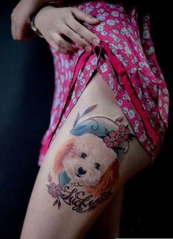 大腿宠物狗纹身