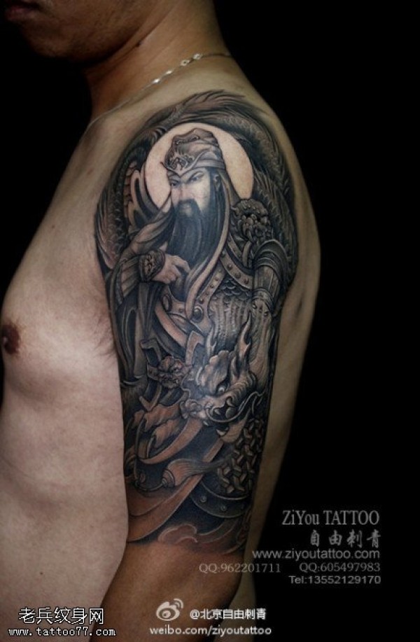 花臂写实关公纹身图案