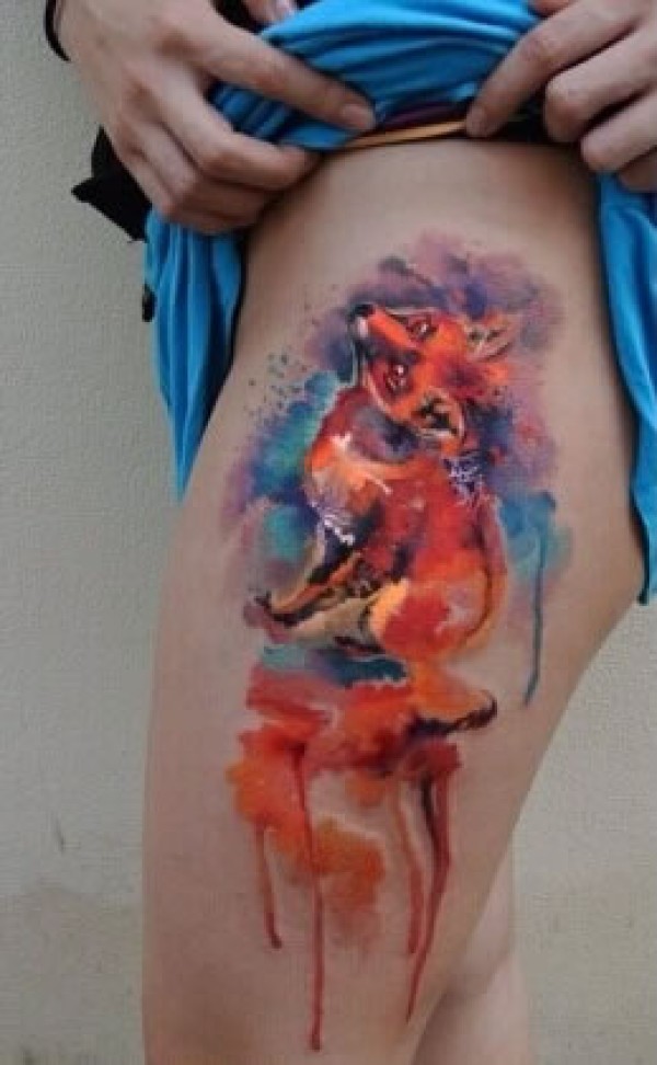 美女大腿上乖巧的狐狸纹身图片图片