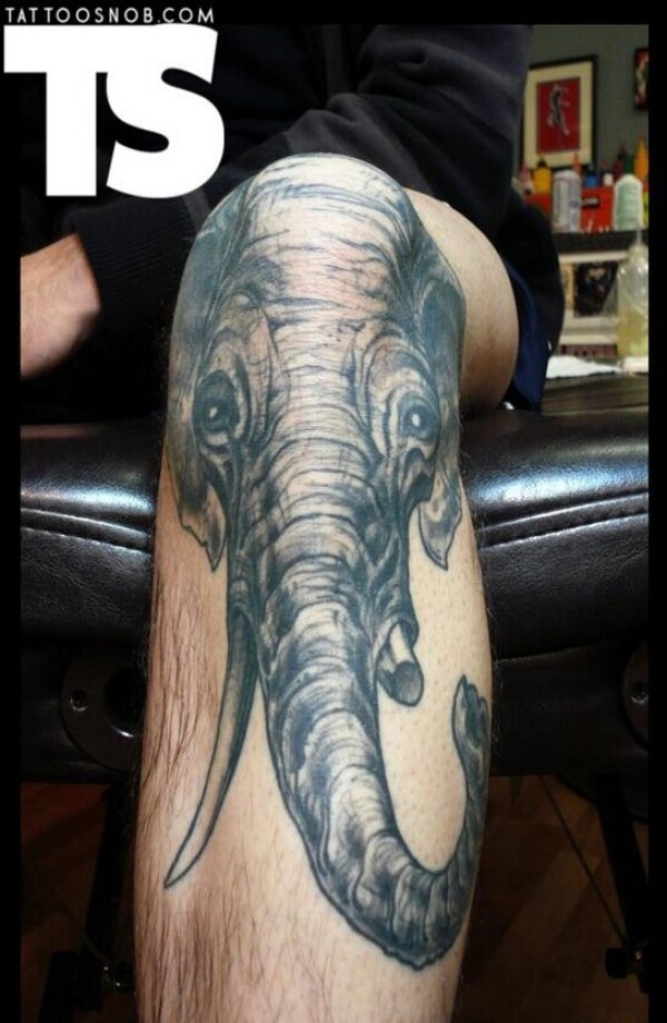 小腿上一款大象纹身图案_腿部纹身图案大全_纹身图吧