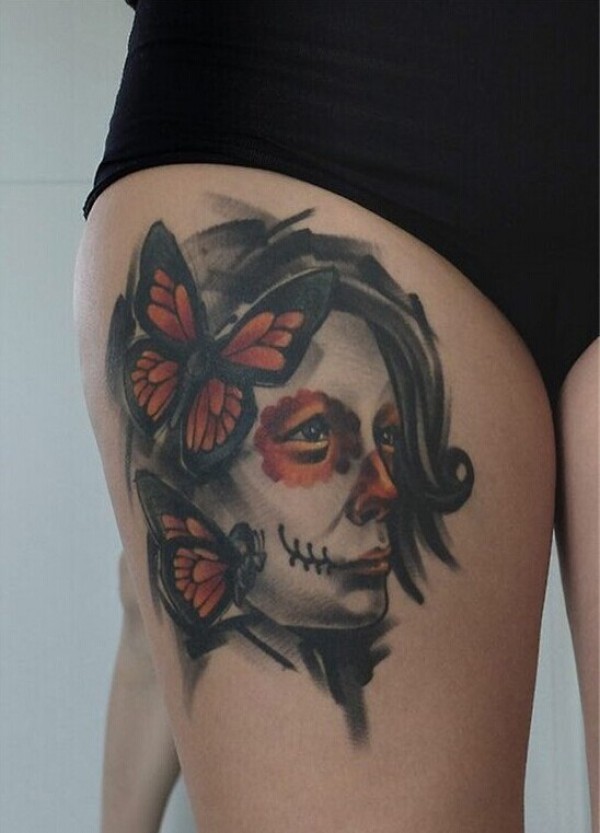 传统花腿纹身--18张传统风格的大花腿纹身图案作品