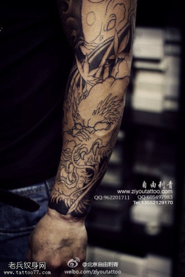 祥龙花臂霸气纹身图案