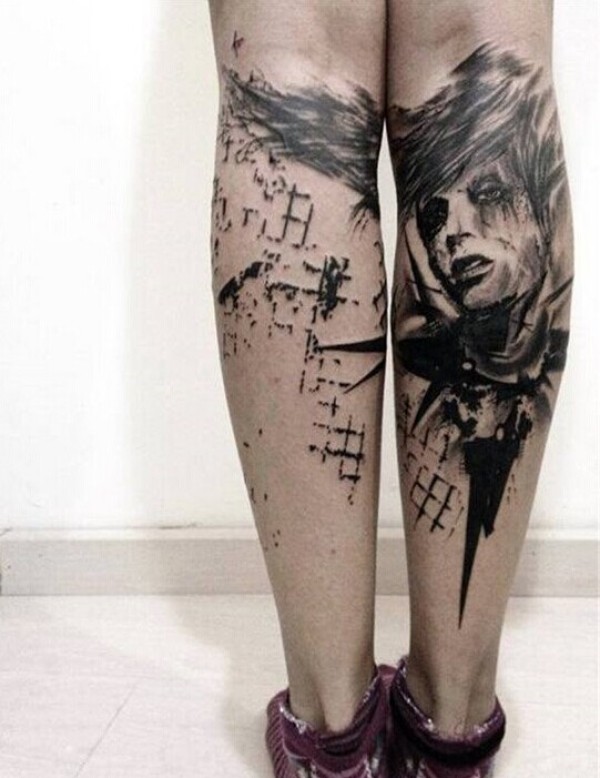 花腿纹身--一组大黑腿纹身图案作品欣赏