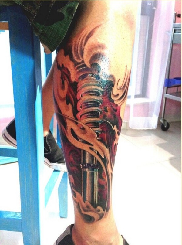 花腿纹身--一组大黑腿纹身图案作品欣赏