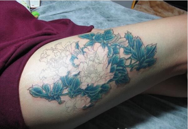 漂亮女生大腿部漂亮清新的牡丹纹身图图片