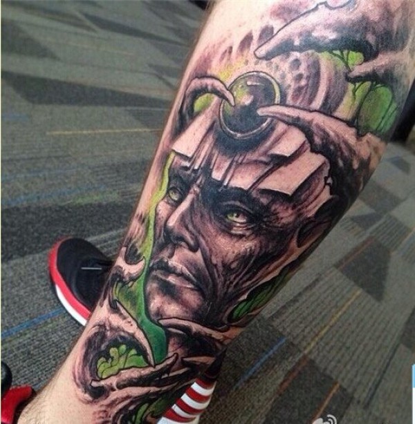 个性腿部人物肖像纹身图案分享图片