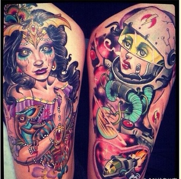 school花臂纹身--一组漂亮的school风格的花臂纹身图案作品