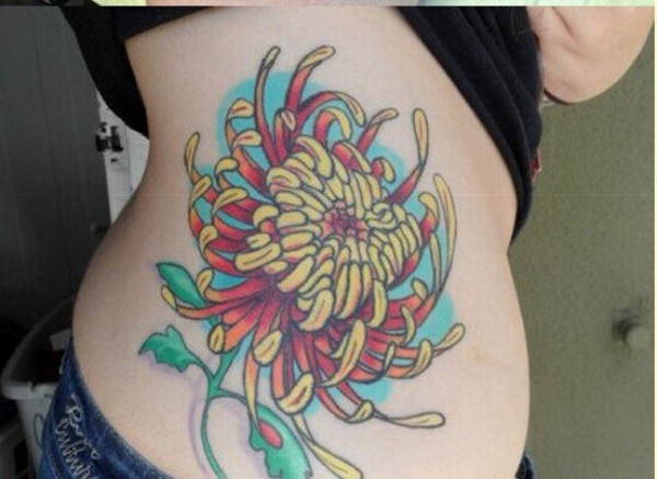 女性腰部莲花花纹刺青_腰部纹身图案大全_纹身图吧