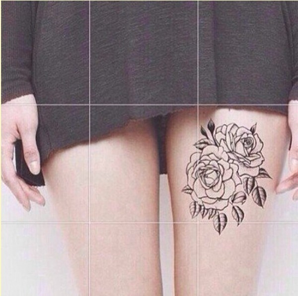 女生腿部漂亮玫瑰花纹身图片欣赏图片