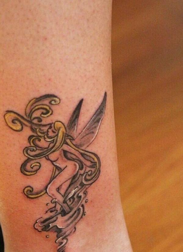 个性腿部漂亮水精灵纹身图案欣赏图片