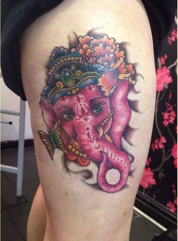 小腿上一款大象纹身图案_腿部纹身图案大全_纹身图吧