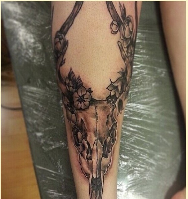 时尚腿部漂亮黑灰羚羊纹身图案欣赏图片