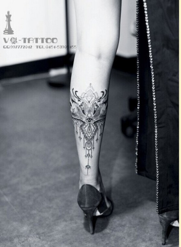 花腿纹身--一组大黑腿纹身图案作品欣赏