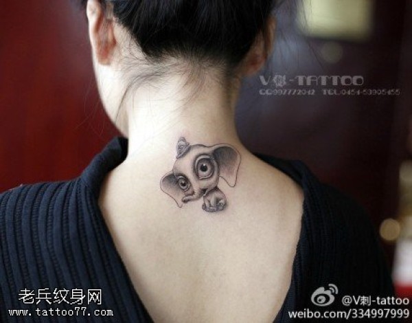 卡哇伊大眼睛小象纹身图案