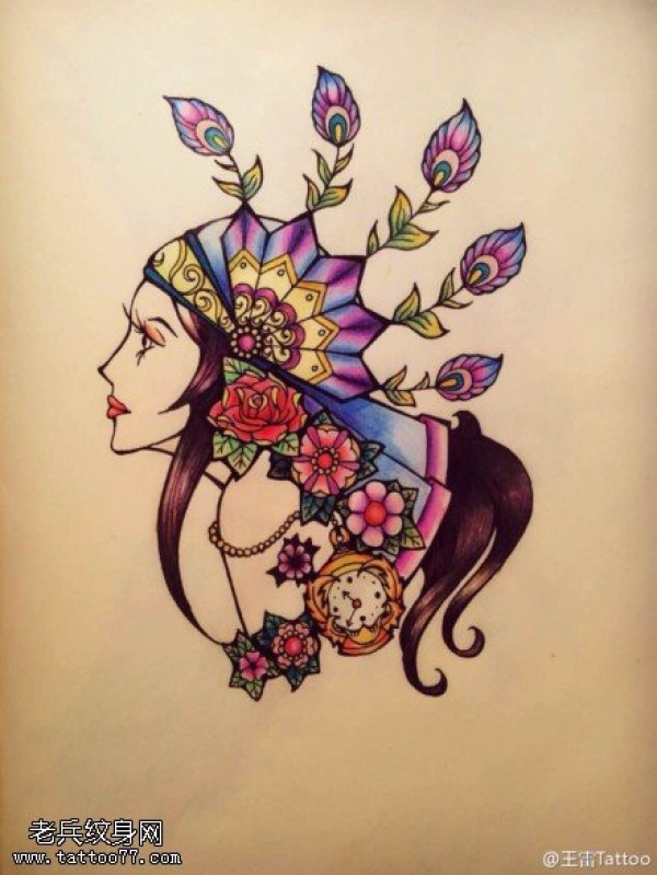 能面万媚纹身手稿_52张日式能剧面具纹身手稿图案素材欣赏