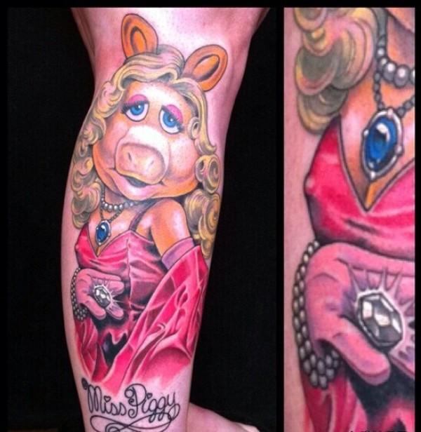 个性腿部漂亮猪小妹纹身图案欣赏图片