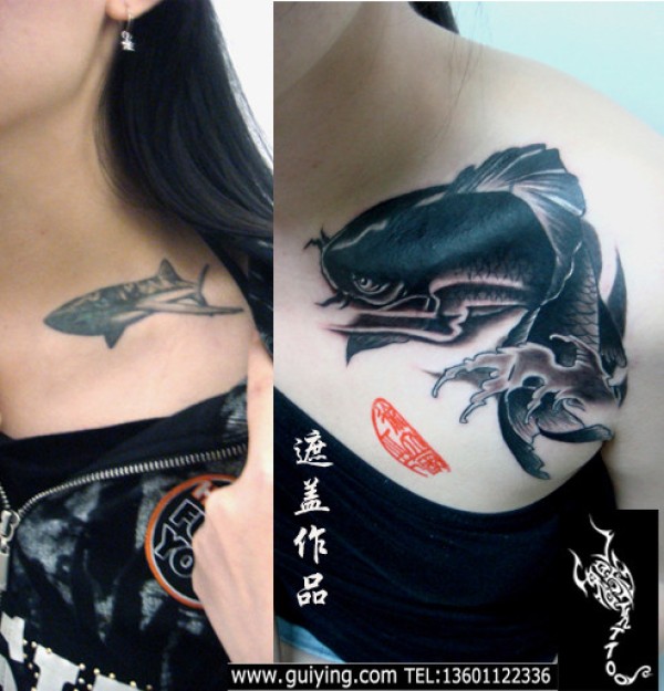 鲤鱼遮盖纹身图案
