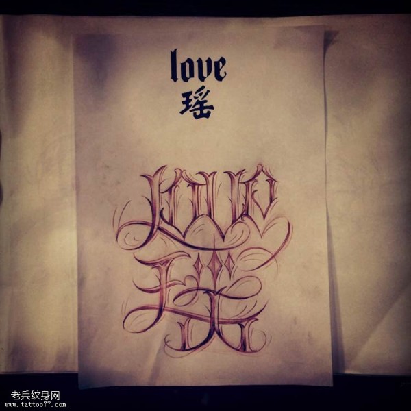 花体字纹身--一组男性漂亮的花体字纹身图案