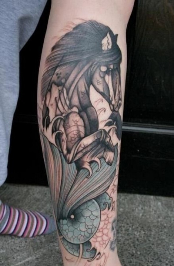 个性腿部时尚彩色马纹身图片欣赏图片