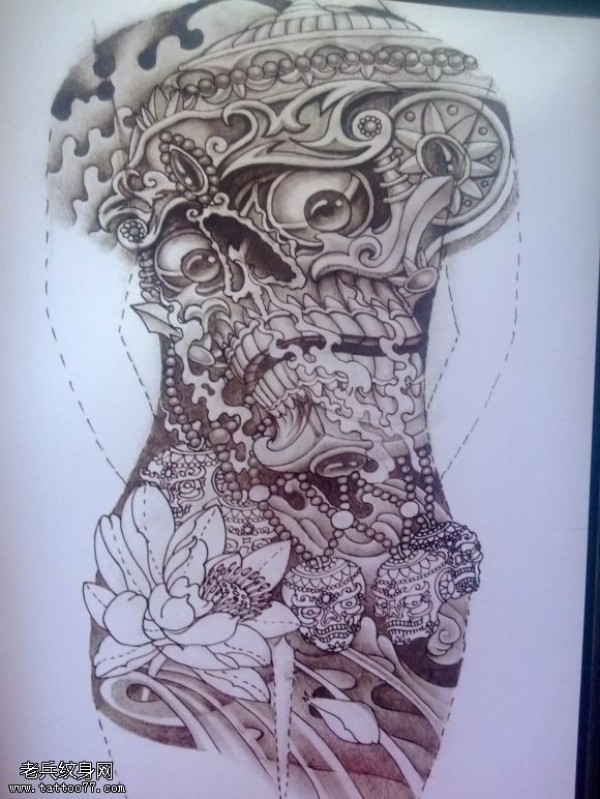 能面万媚纹身手稿_52张日式能剧面具纹身手稿图案素材欣赏