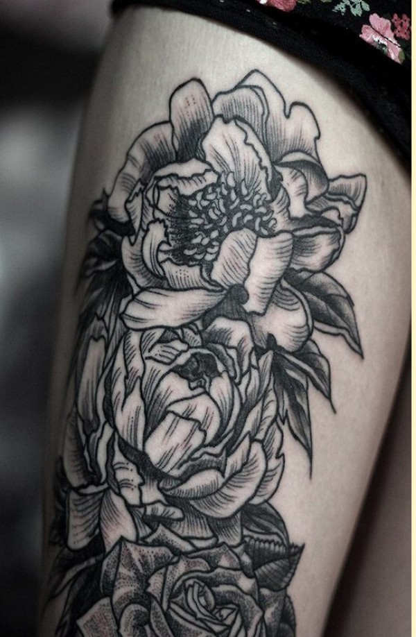 个性腿部漂亮好看的牡丹花纹身图案欣图片