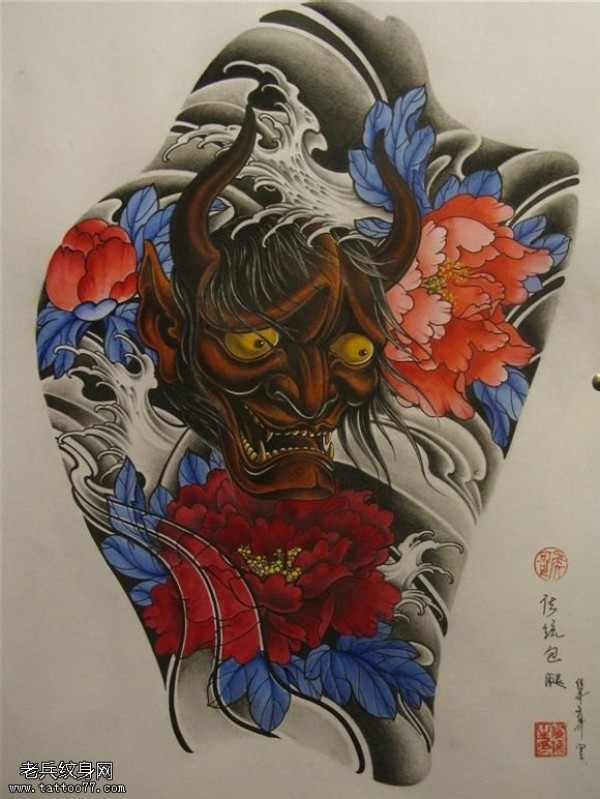 能面万媚纹身手稿_52张日式能剧面具纹身手稿图案素材欣赏