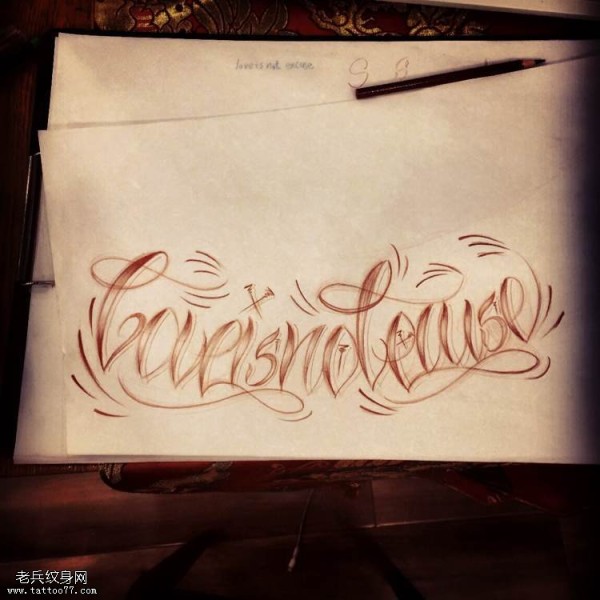 分享一款时尚的花体文字纹身图案