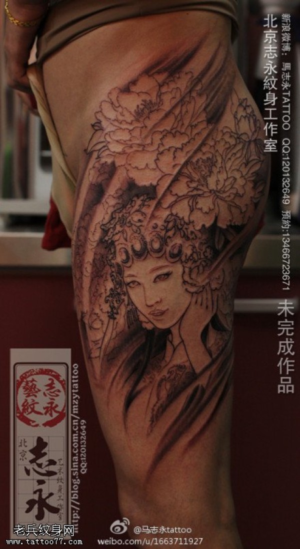 传统花腿纹身--18张传统风格的大花腿纹身图案作品
