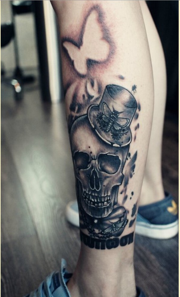 个性时尚腿部骷髅纹身
