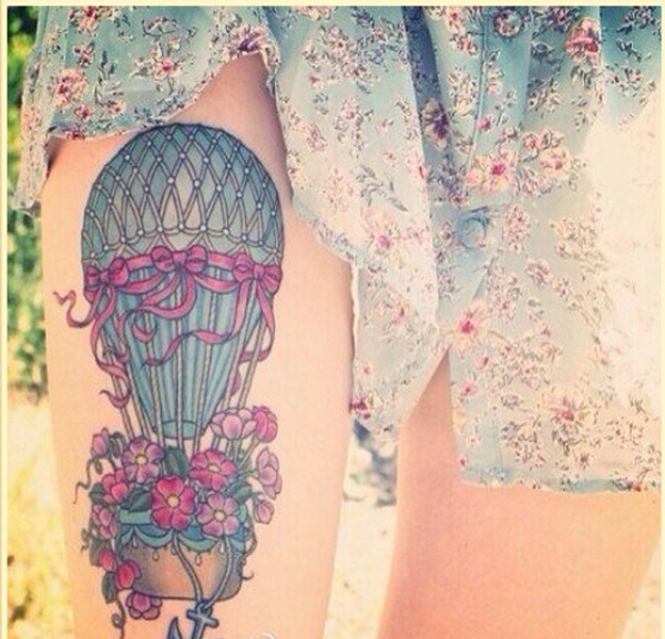 女生腿部漂亮好看的彩色热气球纹身图图片