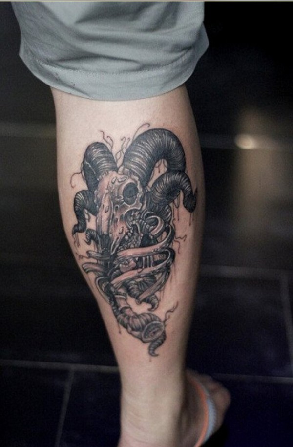 个性时尚腿部骷髅羊头纹身