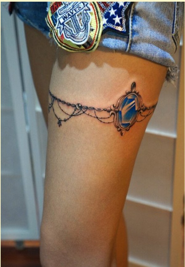 时尚女生腿部漂亮好看的腿链宝石纹身图片