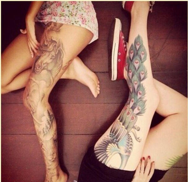 时尚女生花腿漂亮马孔雀纹身图案