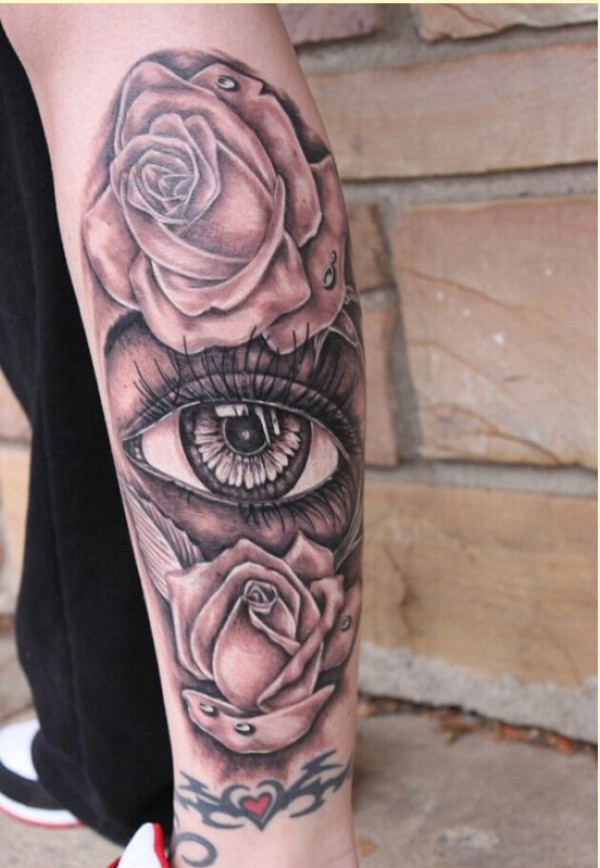 个性腿部时尚好看的玫瑰花眼睛纹身图图片