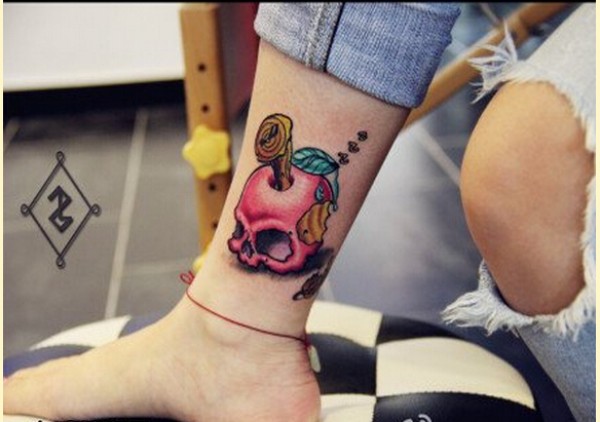 时尚女生腿部好看的彩色小苹果纹身图图片