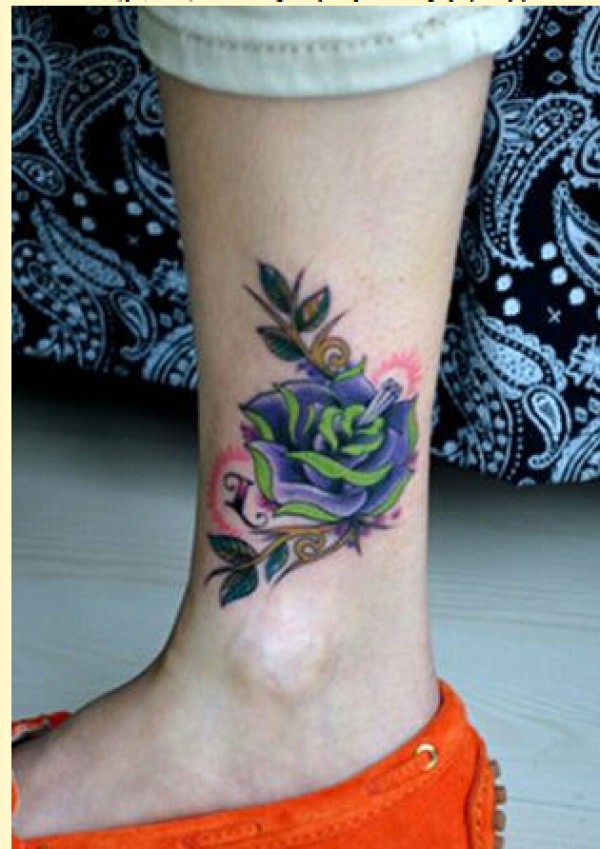女孩子腿部漂亮好看的玫瑰花纹身图案