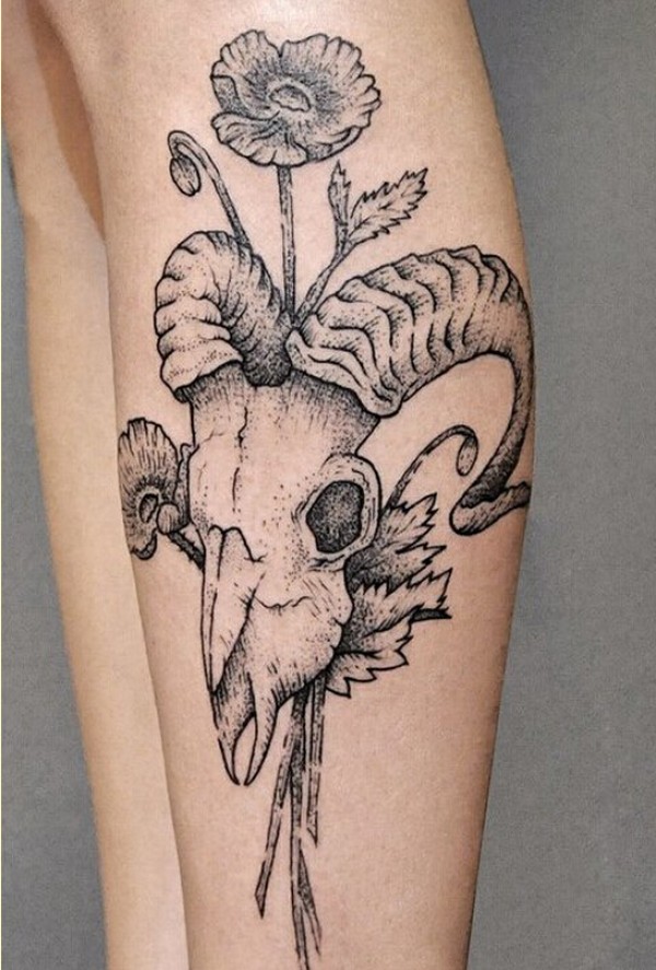 时尚腿部漂亮好看的点刺羚羊纹身图案