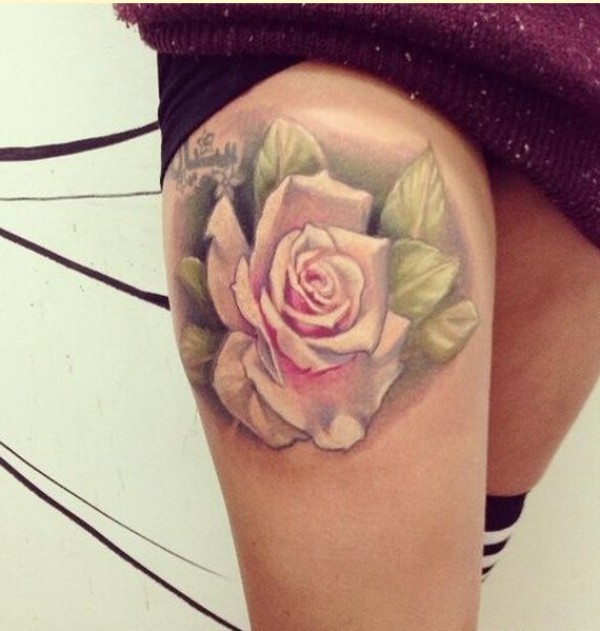 个性女生腿部漂亮好看的玫瑰花纹身图图片