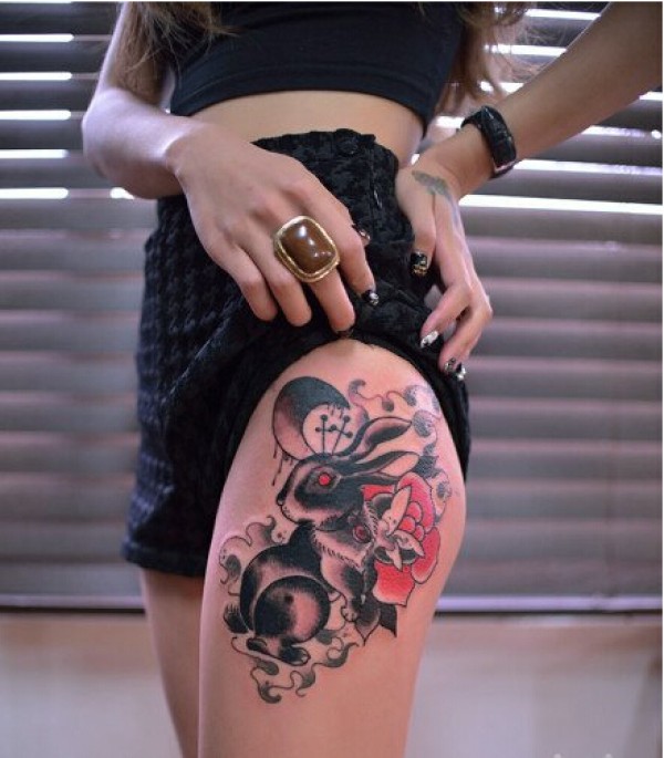 女生腿部漂亮好看的兔子纹身图案 图片