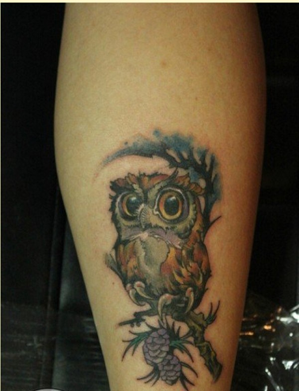 个性腿部时尚好看的彩色猫头鹰纹身图图片