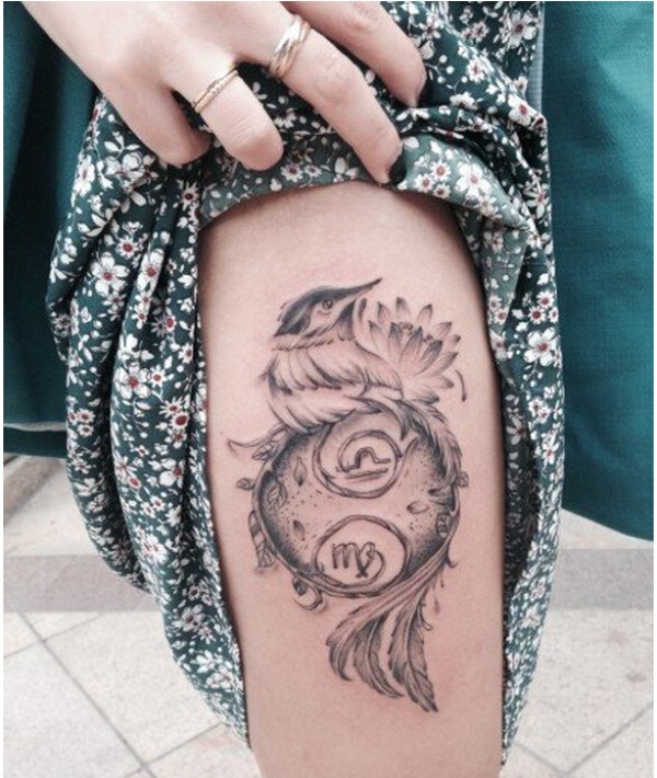 性感女生腿部时尚好看的星座纹身