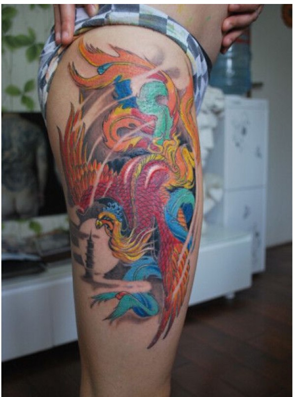 美女腿部时尚好看的的凤凰纹身图案 图片