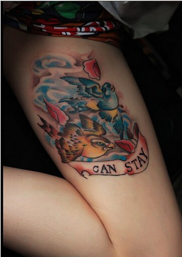 女生腿部精美好看的彩色燕子纹身