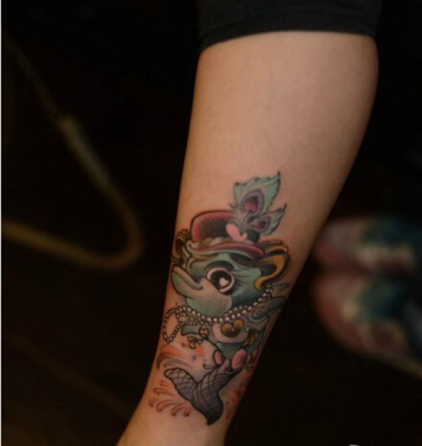 小腿上一款大象纹身图案_腿部纹身图案大全_纹身图吧