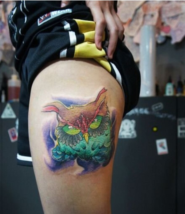 女生腿部经典时尚好看的猫头鹰纹身图图片