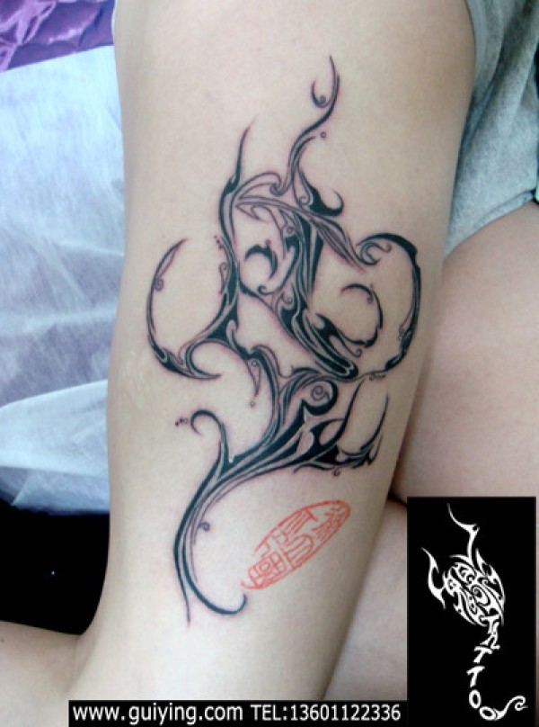 老虎图腾纹身 多款黑灰纹身点刺技巧老虎纹身图案