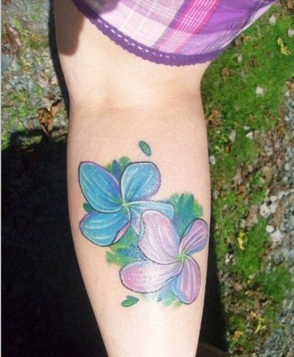 漂亮小腿上两棵精美好看的四叶草纹身图片