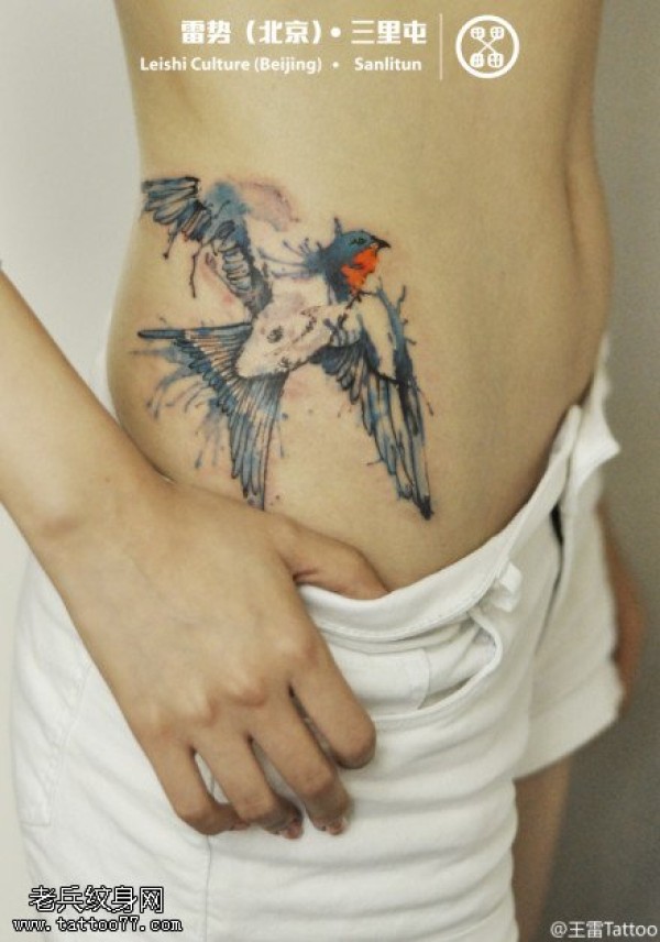 艳丽可爱飞燕纹身图案