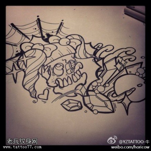 个性骷髅纹身手稿图
