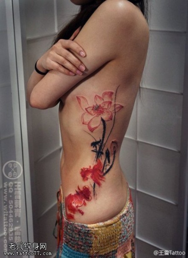 女性腰部莲花花纹刺青_腰部纹身图案大全_纹身图吧